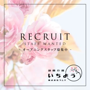 訪問介護いちようのオープンも間近に迫り、慌ただしい毎日を過ごしています。 さて、いちようではこれから一緒に事業を盛り上げていってくれる職員を募集しています。 ガッツリ働きたい正社員も、空いた時間を有効に使える登録ヘルパーも募集しています。 興味がある方は、是非「採用について」のページをご覧になってみてくださいね。