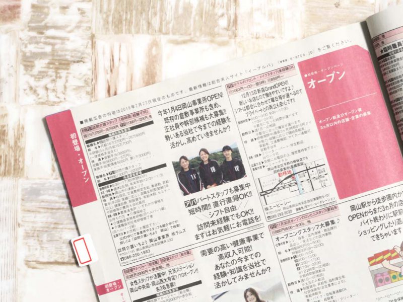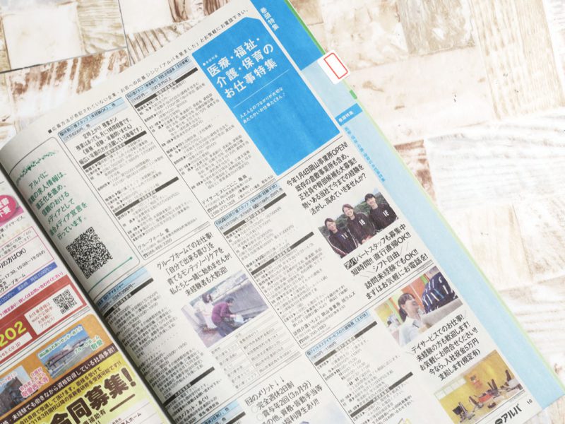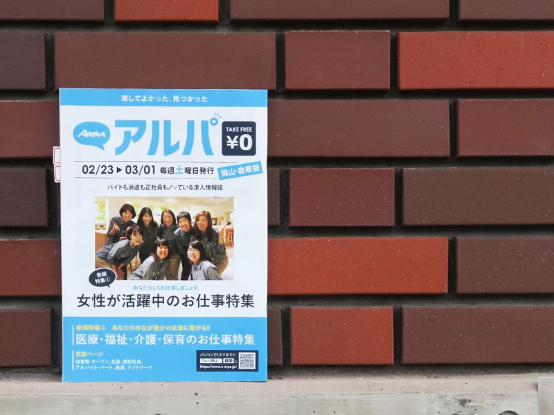 春からの新生活を目指している方も多い時期ですので、求人雑誌のアルパに求人情報を掲載して頂いています。