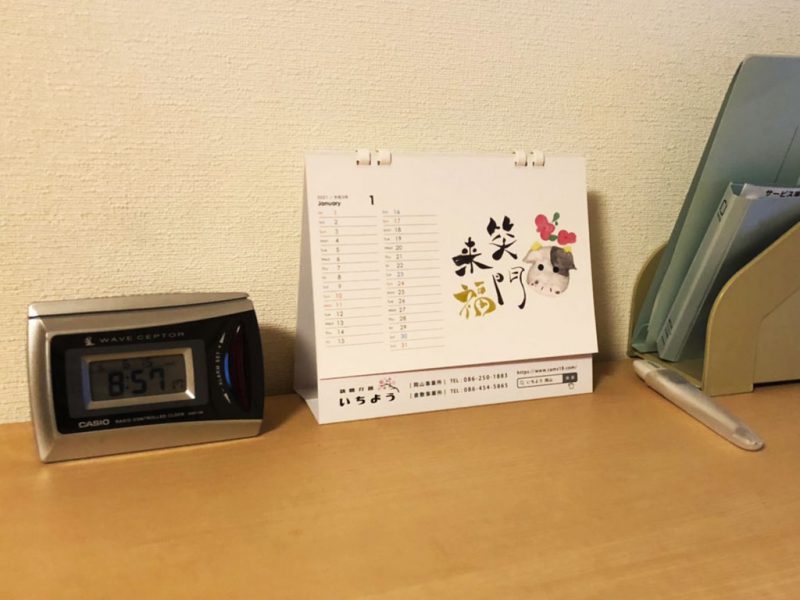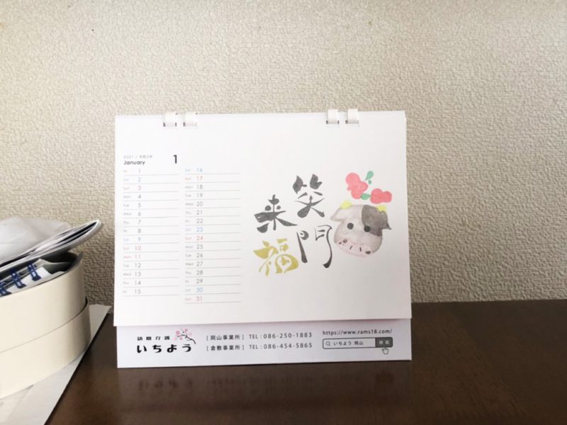 年明け利用者様のご自宅に行くと、封を開けて卓上に飾ってくださっているいちようカレンダーを見て