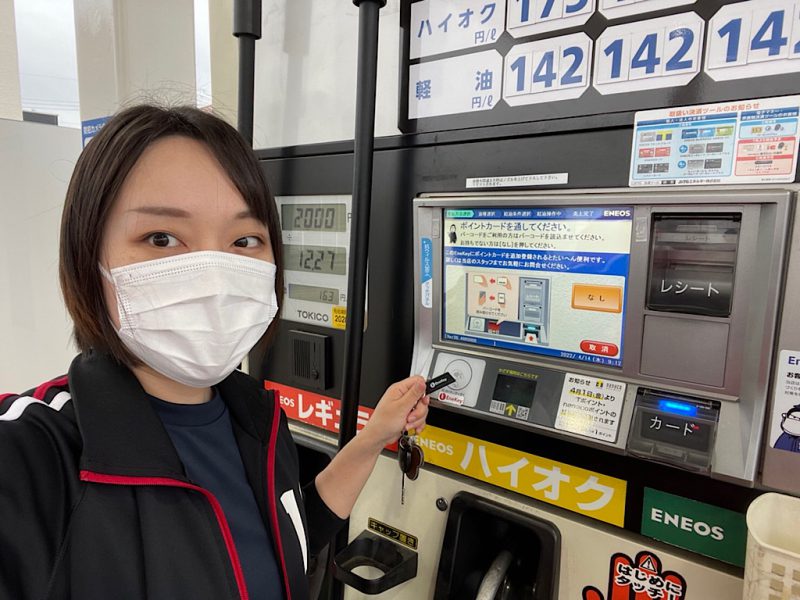 次の日の朝、自分の18(いちよう)号の鍵にEneKeyがついているので、支援の合間にガソリンを入れます。