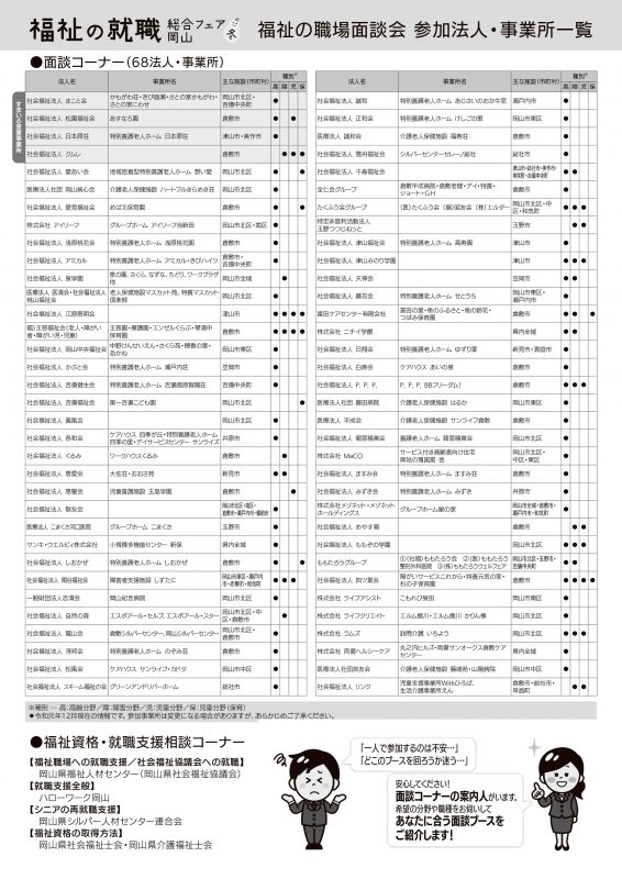 いよいよ今週土曜日に差し迫りました、『福祉の就職総合フェア岡山 冬』!