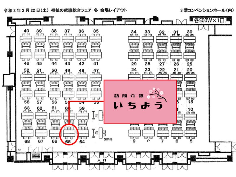 ブースの位置も決まったのですが、いちようは入り口からすぐに見えそうな位置、65番ブースになりました。