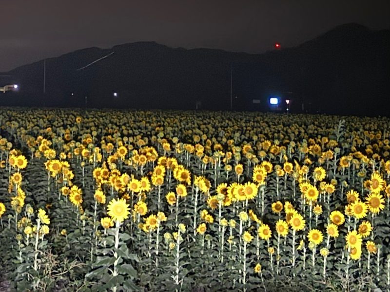 友達と去年もうちょっと咲いとったよなー?なんて言いながら見ていましたが、帰る時駐車場を出ようとしたら、、