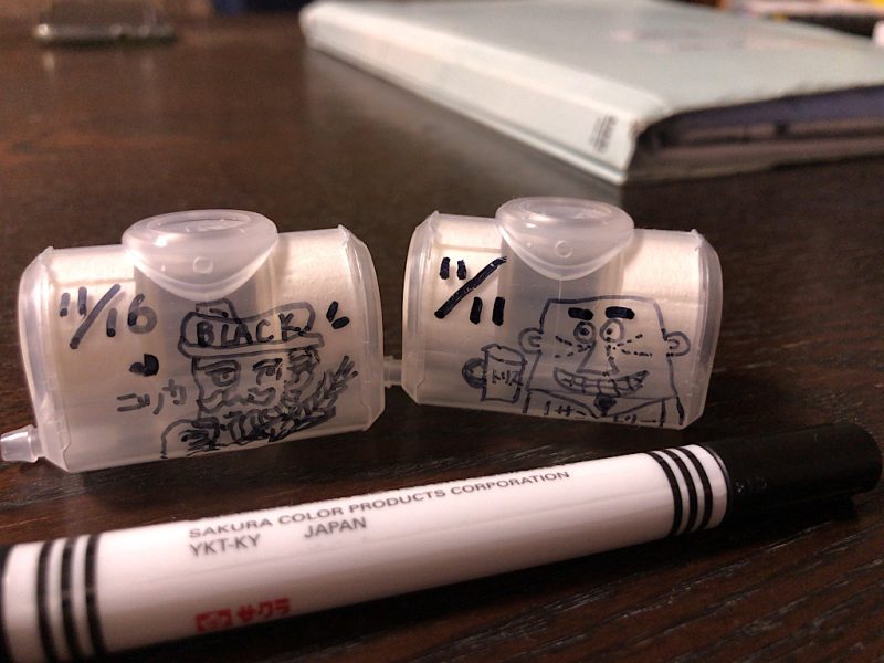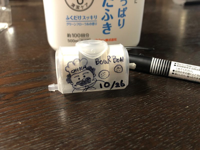 その気切っ子の人工鼻にいつも日付を書くだけでしたが、ここ数ヶ月前からお絵描きをしています。