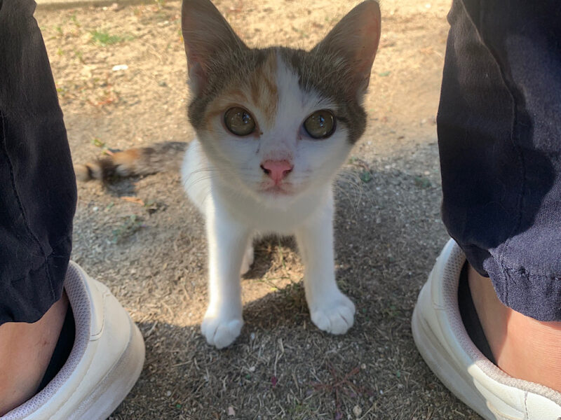 甕から水を飲む方法をしっかり学んでおりました。この子は好奇心も旺盛で、徐々に私にも寄ってきてくれるようになったのですが、一丁前にシャーっとしたりもします。