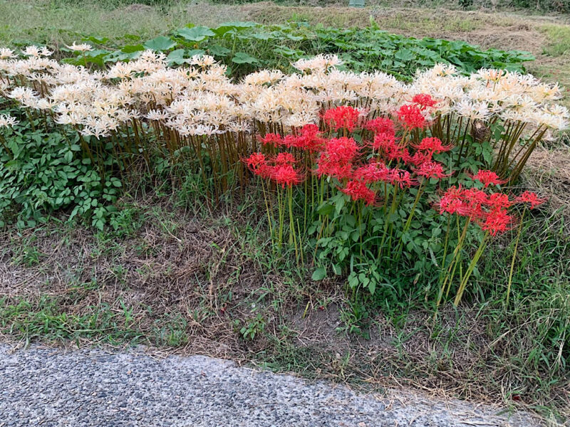 移動の道中、白い彼岸花がたくさん咲いていたので思わず写真を撮りました。