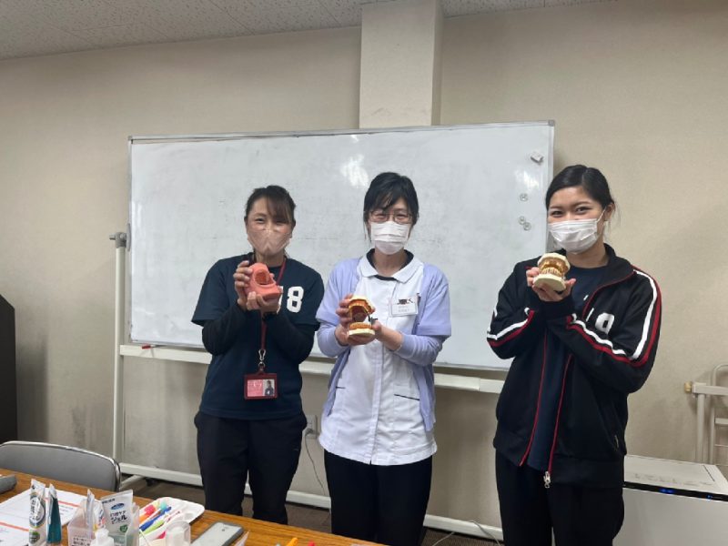 ブラッシングをする時は横磨きではなく縦に磨くなど、利用者様の支援で役に立つ事はもちろん