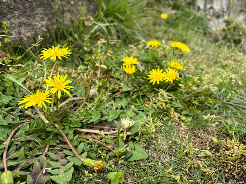 よく見る桜の風景。ですが、私の目に止まった真っ黄色の元気な花。たんぽぽ。
