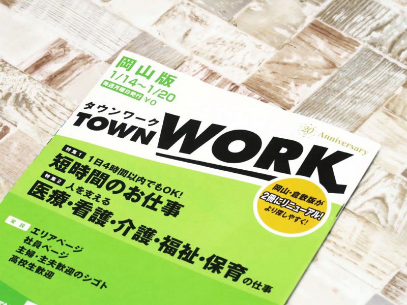 今年から岡山と倉敷で2冊に分かれた新装のタウンワーク。